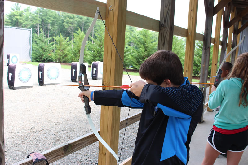 Our archery range provides campers of all ages and experience levels with the thrilling opportunity to hone their skills with a bow! Here, campers can compete in the official Bullseye Challenge. When they get a bullseye on a 50 ft. target, they are awarded a special sticker to show off their archery prowess!